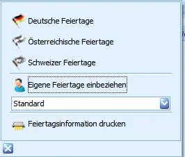 ![]() Ovalox Kalender Designer berücksichtigt Deutsche, Österreichische und Schweizer Feiertage. Neben den jeweiligen Bundesfeiertage, werden auch Bundesländer bzw. Kantons Feiertage berücksichtigt. Es besteht auch die Möglichkeit eigene Feiertage in Kalender aufzunehmen. (z.B. Hochzeitstage, Geburtstage oder andere wichtige Tage. Die eigenen Feiertagen können in Gruppen unterteilt werden. Für die einzelnen Kalender können dann einzelne Gruppen ausgewählt werden. Feiertage können entweder für ein oder mehrere Länder in Kalendern angezeigt werden. |